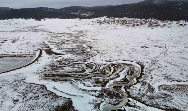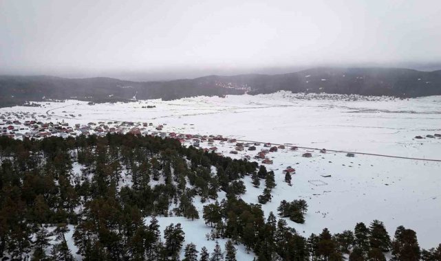 Ankara'nın Çamlıdere ilçesinde yaklaşık 2000 rakımlı Mahya Tepesi'nin eteklerinde yer alan Benli Yaylası, beyaz örtüsüyle doğaseverlerin ilgisini çekiyor. Karla kaplanan menderesleri ve geniş düzlükleriyle dikkat çeken yayla, dron ile havadan görüntülendi. Bölgeye gelen ziyaretçiler, aileleriyle birlikte doğayla iç içe tatil yapma imkanı buluyor.