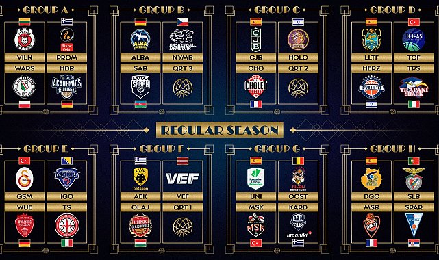 Galatasaray; Igokea m:tel, FIT/One Würzburg Baskets ve Pallacanestro Trieste ile birlikte E Grubu'nda yer aldı. Mersin Spor da G Grubu'nda Unicaja, Filou Oostende ve Karditsa Iaponiki ile eşleşti. Tofaş ise D Grubu'nda La Laguna Tenerife, Bnei Penlink Herzliya ve Trapani Shark ile karşılaşacak.