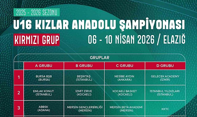 Basketbol U16 Kızlar Anadolu Şampiyonası, 6-10 Nisan 2026 tarihleri arasında Elazığ'da düzenlenecek.