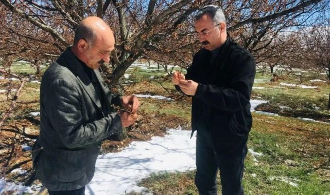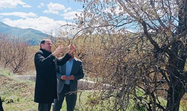 Baskil'de dondan etkilenen meyve bahçelerinde inceleme