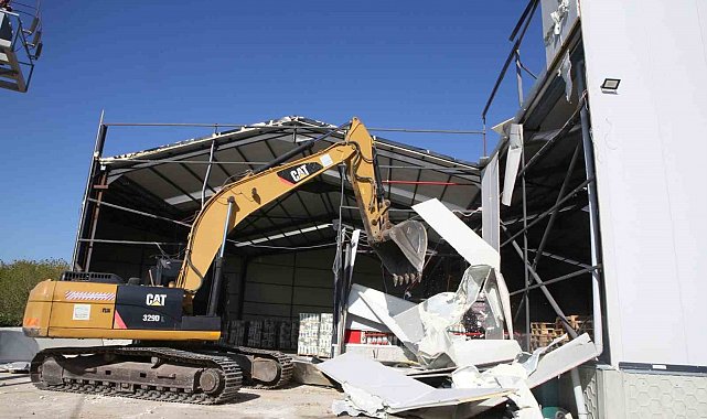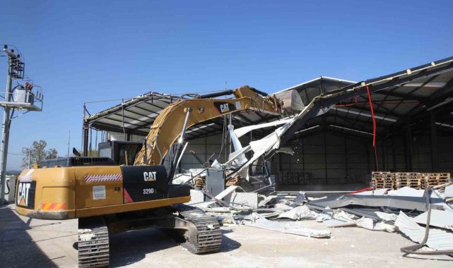 Nilüfer Belediyesi yıkım ekipleri, Başköy Mahallesi'nde 2 bin 400 metrekare alanda faaliyet gösteren ruhsatsız depoyu yıkarak, kullanılamaz hale getirdi.