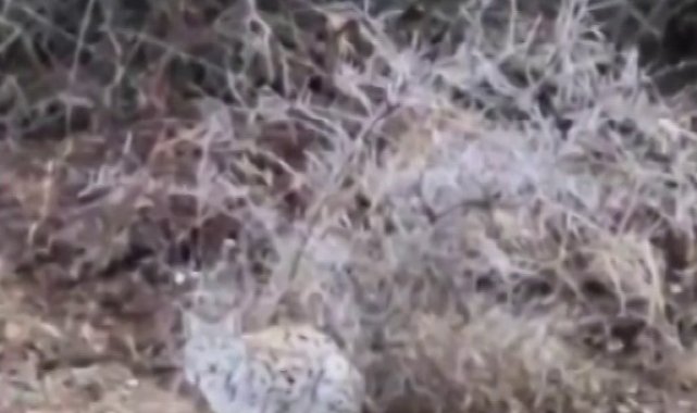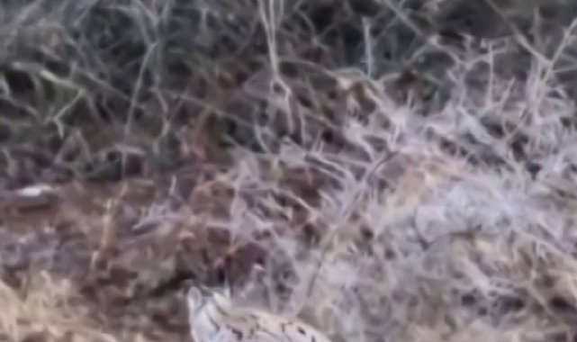 Sivas'ın Zara ilçesinde araç kullanırken nesli tükenme tehlikesi altında bulunan vaşak ile karşılaşan Erhan Güler, nadir görülen hayvanı cep telefonuyla görüntüledi.