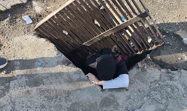 Bastığı gider mazgalı kayan kız öğrenci, 1 buçuk metrelik çukura düştü