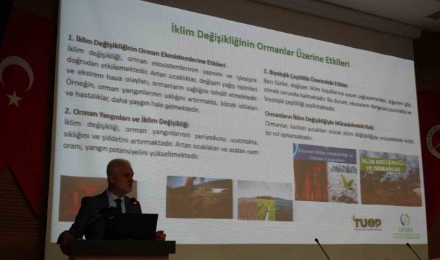 İklim değişikliğinden ekosistemlerin etkilendiğini belirten Küçük, "Özellikle ekstrem hava olaylarına karşı karşıya aşırı yağışlar oluyor ve aşırı aşırı kurak periyotlar oluyor. Uzun periyotlar oluyor. Normal ekosistemi üzerindeki etkileri, orman yangınları artık sezon kalmadı. Aralık ayında Amerika'da orman yangını yaşadık ve biyoçeşitlik noktasında da yine bazı türler adaptasyonu sağlayamayacak. Ortadan kalkınması öngörülüyor. Bu noktada iklim değişikliğiyle mücadelede olmazsa olmazlardan birisi ormanlarımızı korumaya yönelik hepimize vazife düşüyor. Böcek istilalarında ve popülasyonlarında zararlı böceklerde patlamalar öngörülüyor. Kuraklık kaynaklı kurumalar, malumunuz ve büyük ve şiddetli yangınlar ve özellikle Türkiye ormancılığın da güzel uygulamalar var. Çeşitli projeler var, bu projelerin daha da yaygınlaştırılması gerekiyor. Bunları yapmak kolay değil. İklime dirençli orman kurma, oturduğumuz yerde bazı şeyleri çok kolay konuşabiliyoruz ama sahada uygulaması da lazım" diye konuştu.