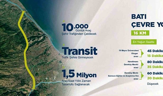 Samsun Büyükşehir Belediye (SBB) Başkanı Halit Doğan, Batı ve Doğu Çevre Yolu'nun transit araçları şehir içi trafikten uzaklaştırarak kenti içi trafiğini rahatlatacağını söyledi. Doğan ayrıca, yapımına başlanan 15 milyar TL maliyetli Batı Çevre Yolu'nun tamamlanması ile günlük 10 bin aracın kente girmeden güzergahına devam edeceğini açıkladı.