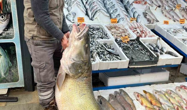 Batman'da balık tezgahında sergilenen dev turna ilgi odağı olurken, vatandaşlar balıkla fotoğraf çektirerek bu anı ölümsüzleştirdi.