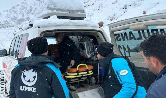 Batman'ın Sason ilçesinde etkili olan yoğun kar yağışı ve buzlanma nedeniyle yolu kapanan köyde rahatsızlanan 42 yaşındaki hasta, paletli ambulans ve UMKE ekiplerinin çalışmasıyla hastaneye ulaştırıldı.