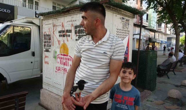 Turgut Özal Caddesi'nde ağaçtaki yuvalarından düşün iki yavru kargayı fark eden 19 yaşındaki Celal Kolkaldıran, bir kutuya koyduğu yavru kuşlara eliyle su verdi. Gencin durumu 112 Acil Çağrı Merkezine bildirmesi üzerine olay yerine itfaiye ekibi sevk edildi. Yavru kargalar, itfaiye erleri tarafından yangın merdiveni yardımıyla yuvalarına yerleştirildi.