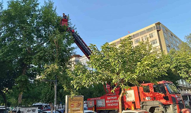 Batman'da ağaçtan düşen yavru kargalar itfaiye ekiplerince yuvaya bırakıldı