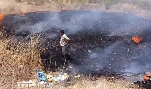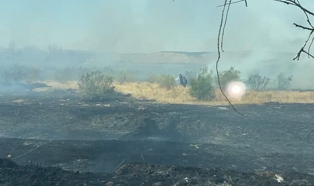Anız yangınında 100 dönümlük alan zarar gördü.