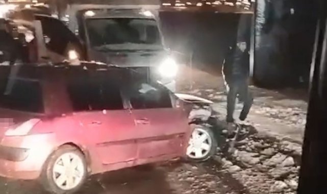 Batman'da buz pistine dönen yolda 2 araç çarpıştı