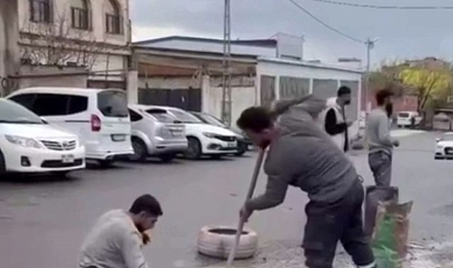 Batman'da Gültepe Sanayi Sitesinde esnaf, yollarda oluşan çukurların uzun süredir onarılmaması üzerine kendi imkanlarıyla çözüm üretmeye başladı.
