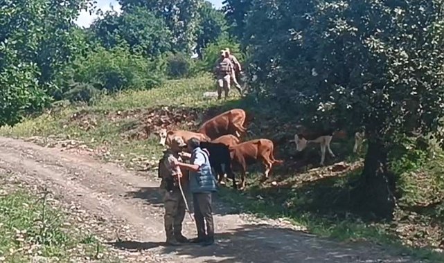 Yaklaşık 2 saat süren ve dron kullanılan çalışmaların sonunda, kayıp hayvanların 5 kilometre uzaklıktaki ormanlık alanda olduğu tespit edildi. Ekipler tarafından bulunan büyükbaş hayvanlar, sahibine teslim edildi.