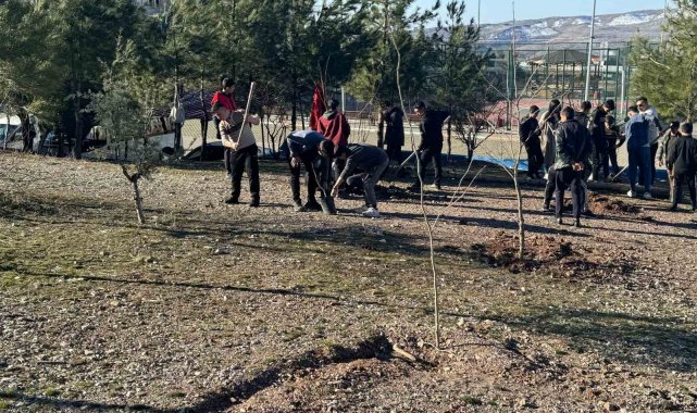 Batman'ın Sason ilçesi Yücebağ beldesindeki Yücebağ Borsa İstanbul Yatılı Bölge Ortaokulunda "YİBO'da Bir Dikili Ağacım Olsun" etkinliği dahilinde bin adet fidan toprakla buluşturuldu.