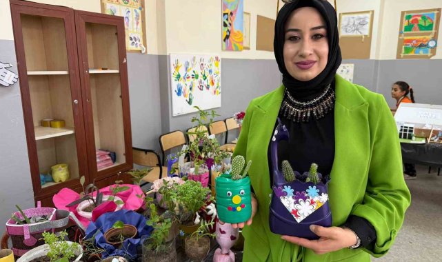 TOKİ Kazım Karabekir İlkokulu'nda Din Kültürü ve Ahlak Bilgisi Öğretmeni Nursema Nergiz Kara öncülüğünde başlatılan çalışmalarda, geri dönüştürülebilir materyallerle değerler eğitimi ve yabancı dil kazanımları somut hale getirildi. Pet şişelerden saksılar, kartonlardan Kabe maketleri, deterjan kutularından oyuncaklar ve yoğurt kaplarından ramazan davulları hazırlandı.