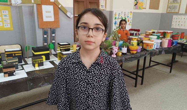 4'üncü sınıf öğrencisi Arya Lina Öztürk, yıl boyunca hazırladıkları materyalleri sene sonu sergisinde vatandaşlarla buluşturduklarını ifade ederek, "Din Kültürü ve İngilizce öğretmenlerimizin desteğiyle atıklardan yaptığımız çalışmaları sergiledik. Pet şişeleri kedi şeklinde saksılara dönüştürdük, kartonlardan Kabe maketi yaptık. Eski oyuncaklarla İngilizce hayvanat bahçesi etkinliği hazırladık. Hem eğlendik hem öğrendik" ifadelerini kullandı.