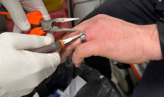 Batman'da 21 yaşındaki genç, parmağına sıkışan yüzüğü çıkartamayınca durumu 112 Acil Çağrı Merkezine bildirdi. İhbar üzerine itfaiye eri Mehmet Aktan, parmakta sıkışan yüzüğü İluh Devlet Hastanesi'nde doktor gözetiminde bir saatlik çalışmanın sonunda çıkarttı.