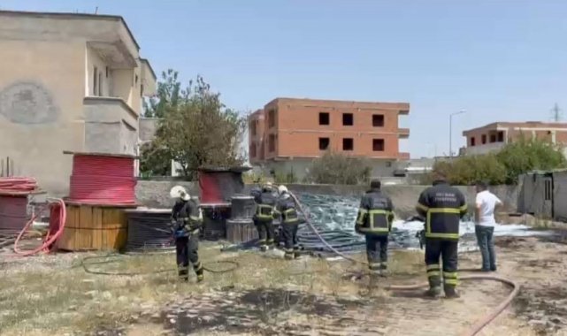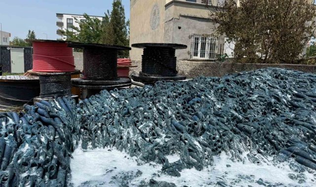 Batman'da bir elektrik firmasına ait şantiye bahçesinde bulunan plastik borular ve elektrik kabloları alevlere teslim olurken, yangın itfaiye ekiplerinin müdahalesiyle söndürüldü.