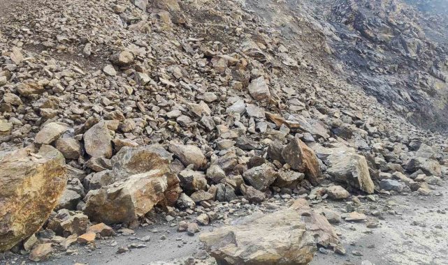 Batman'ın Sason ilçesine bağlı Derince, Yücebağ ve Dörtbölük grup köy yollarında meydana gelen heyelan sonrası yola düşen dev kayalar, İlçe Özel İdaresi şantiye ekipleri tarafından temizlendi.