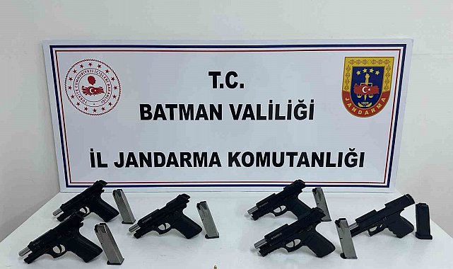 Batman İl Jandarma Komutanlığı, Kaçakçılık ve Organize Suçlarla Mücadele Şube Müdürlüğü ekipleri (KOM) tarafından 1 şüphelinin silah ve mühimmat kaçakçılığı yaptığı yönünde alınan bilgiye istinaden yapılan arama faaliyetinde 6 ruhsatsız tabanca, 6 tabanca şarjörü ve 1.9 mm çapında fişek ele geçirildi. Olayla ilgili gözaltına alınan şüpheli, jandarmadaki işlemlerinin ardından sevk edildiği adli makamlarca tutuklandı.