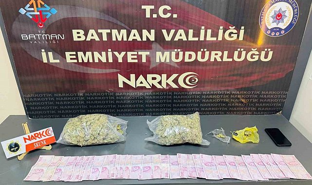 Batman İl Emniyet Müdürlüğüne bağlı Narkotik Suçlarla Mücadele Şube Müdürlüğü ekipleri, şüphelendikleri bir aracı durdurdu. Durdurulan araçta yapılan aramada 1 kilo 55 gram skunk maddesi ve 6 bin 200 lira ele geçirildi. Olayla ilgili 1 kişi gözaltına alındı.