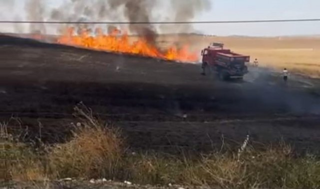 Yangında yaklaşık 25 dönüm ekili buğday yanarken çıkış nedeninin belirlenmesi için çalışma başlatıldı.