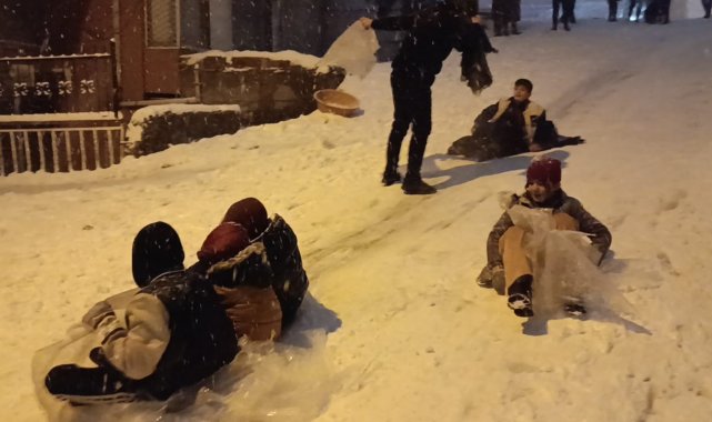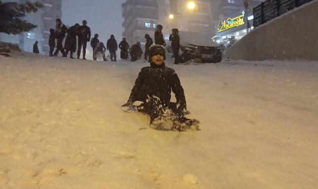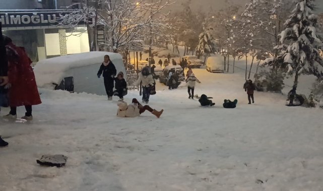 Yoğun kar yağışıyla birlikte kent genelinde kartpostallık görüntüler oluşurken, yaşanan coşku kameralara yansıdı.