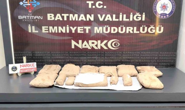 Batman'da polis ekiplerinin düzenlediği narkotik operasyonunda bir araçta yapılan aramada bavul içerisinde gizlenmiş 8 kilo 500 gram metamfetamin ele geçirildi. Olayla ilgili gözaltına alınan şüpheli tutuklanarak cezaevine gönderildi.