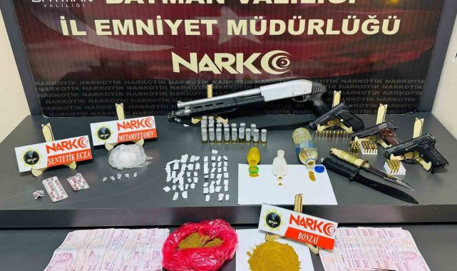 Batman İl Emniyet Müdürlüğü, uyuşturucu ile mücadele kapsamında yürütülen çalışmalar doğrultusunda önemli bir operasyona imza attı. Narkotik ekipleri, çevre illerden Batman'a uyuşturucu madde sevk ederek kent genelinde torbacı yöntemiyle satış yapan şüphelileri takibe aldı. Teknik ve fiziki takip sonucunda 21 şüphelinin kimliği tespit edildi. 6 Mayıs 2025 günü sabah saatlerinde özel harekât destekli operasyonla 15 adrese eş zamanlı baskın düzenlendi. Operasyonda 514 gram sentetik kannabinoid (bonzai), 17 gram metamfetamin, 30 adet sentetik ecza, 3 ruhsatsız tabanca, 67 adet fişek, 1 pompalı tüfek, 21 tüfek kartuşu, 2 kasatura ve suçtan elde edildiği değerlendirilen 38 bin lira nakit para ele geçirildi.