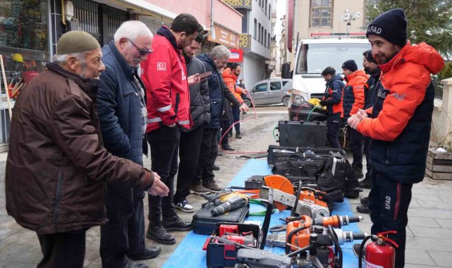 Ulu Camii bahçesinde gerçekleştirilen etkinlikte, AFAD personellerince modern arama-kurtarma araçları ve teknik ekipmanlar vatandaşlara tanıtıldı.