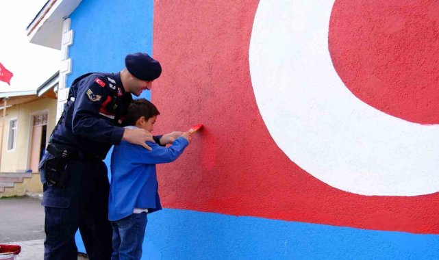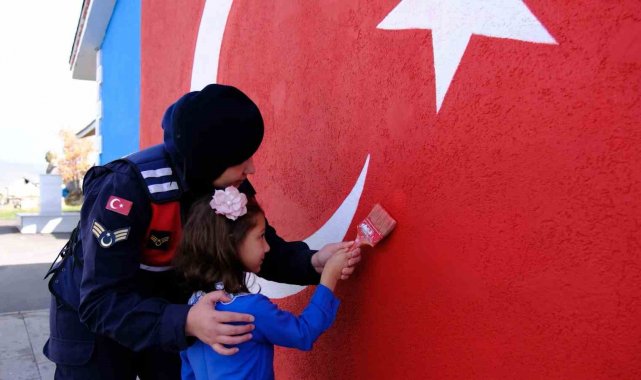 Etkinlik kapsamında jandarma personeli, öğrencilerle birlikte fırçaları ellerine alarak, okul duvarına al yıldızlı dev Türk bayrağını çizdi. Duvara nakşedilen bayrağın etrafı da hep birlikte boyanarak, tamamlandı. Boyama sürecinin ardından öğrencilere rengarenk balonlar, Türk bayrakları ve çeşitli hediyeler dağıtıldı. 29 Ekim Cumhuriyet Bayramı, köy okulunda büyük bir coşkuyla kutlandı.