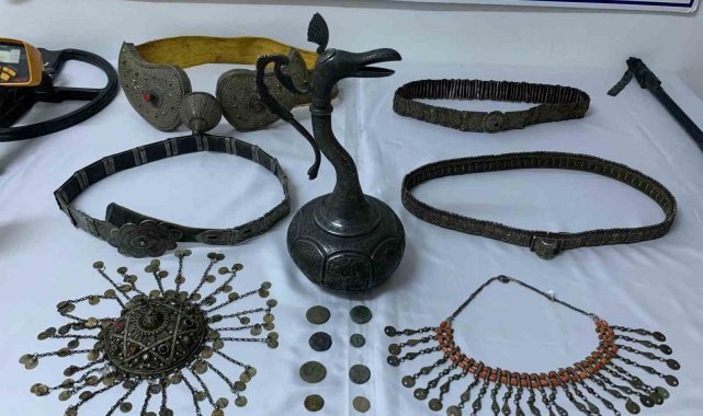 Aramalarda, Osmanlı ve Selçuklu dönemlerine ait 4 adet gümüş işlemeli kemer, 1 adet üzeri işlemeli gümüş ibrik, 2 adet takı eşyası, 10 adet Doğu Roma dönemine ait sikke ve objeler ele geçirildi. Ayrıca, operasyon kapsamında 2 bin 583 adet çeşitli ülkelere ait sahte olduğu değerlendirilen banknot para, bir tabanca ve 47 adet tabanca fişeği bulundu.