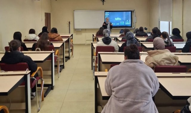 Ağlarbaba Kız Öğrenci Yurdunda üniversiteli öğrencilerle buluşan Müftü Yardımcısı İlim Tatlı, 'Genç Yüreğin Dayanağı: Sabırla Yürümek, Tevekkülle Güçlenmek' konulu söyleşi gerçekleştirdi. Tatlı, öğrencilerle tanışarak sohbet etti.