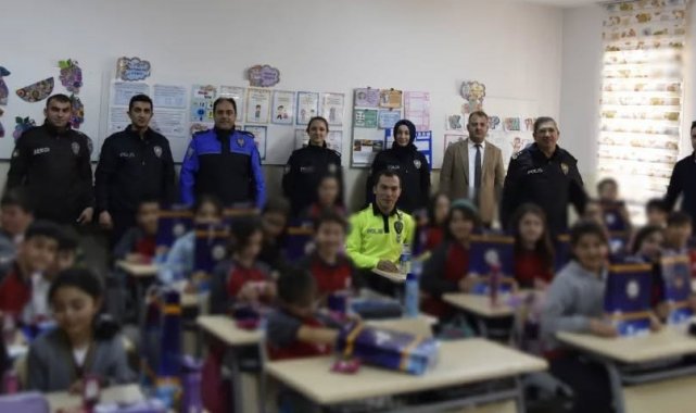Asayiş Şube Müdürlüğü, Trafik Tescil ve Denetleme Şube Müdürlüğü ve Toplum Destekli Şube Müdürlüğü personellerince Cumhuriyet İlkokulu öğrencileri sınıflarında ziyaret edilerek, öğrencilerin 23 Nisan Ulusal Egemenlik ve Çocuk Bayramı kutlandı. Polislerin sürpriz ziyaretinden mutluluk duyan öğrencilere çeşitli hediyeler dağıtılarak, bayram coşkusu birlikte yaşandı, öğrencilerin mutluluklarına ortak olundu. Hediyelerini alan öğrenciler, ekiplere teşekkür ederek, merak ettiği soruları da yönelttiler. Etkinlik, günün anısına çekilen hatıra fotoğrafı ile son buldu.
