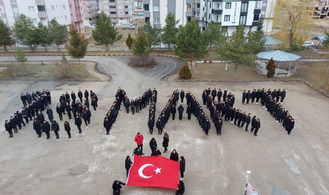 Kız öğrencilerin hazırlanarak ortaya çıkardığı duygusal anlar ise ayrıca havadan görüntülendi. Şehit Osman Tepesi'nde bulunan şehitliği ziyaret eden öğrenciler ardından okul bahçesinde '18 Mart' yazılı koreografisiyle, şehitleri anarak hep bir ağızdan Kahramanmaraş merkezli depremlerden etkilenen illeri sayıp, 'burada' dediler.