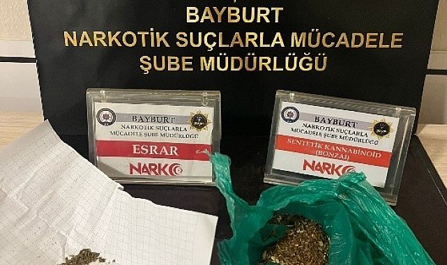 Bayburt İl Emniyet Müdürlüğü Narkotik Suçlarla Mücadele Şube Müdürlüğü görevlilerince durdurulan bir araçta arama yapıldı. Araç içerisinde bulunan Z.P ve E.K isimli şahısların üzerleri de arandı, yapılan adli aramada şüphelilerin üzerinden bir miktar bonzai ve esrar maddesi çıktı. Çıkan uyuşturucu maddesine el konularak, şüpheli şahıslar hakkında 'Uyuşturucu veya Uyarıcı Madde Kullanmak' suçundan adli işlem yapıldı.