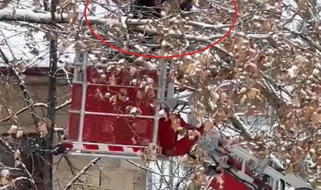 İhbar üzerine olay yerine gelen ekipler, itfaiye aracıyla ağaca çıkarak karganın yanına ulaştı. Ekipler, titiz bir çalışma yürüterek karganın kanatlarını takıldığı dallardan çıkardı.