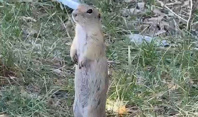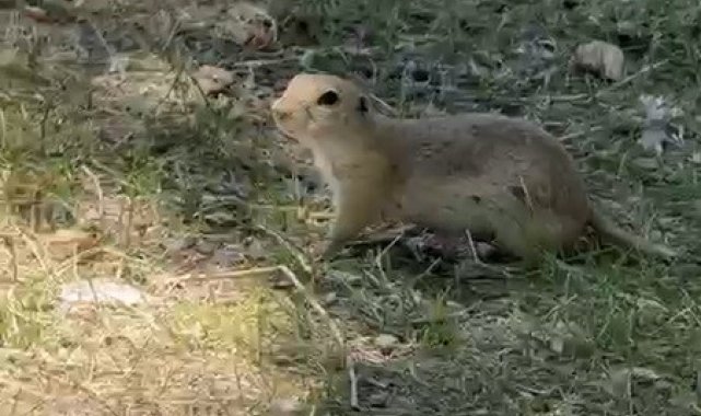 Bayburt'ta daha önce bisküvi yerken görüntülenen Anadolu yer sincabı bu kez yiyecek ararken görüldü