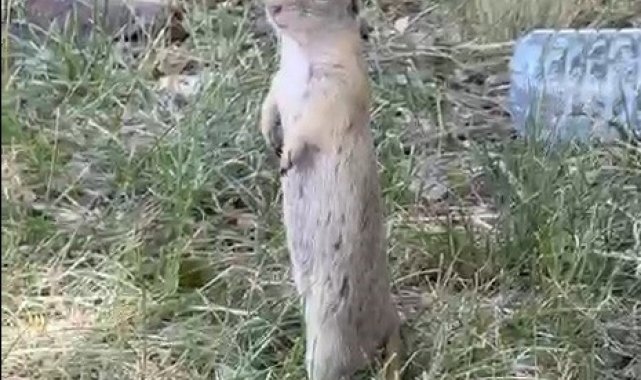 Bayburt'un Demirözü ilçesinde daha önce bisküvi yerken kameralara yansıyan Anadolu yer sincabı, bu kez arazide yiyecek ararken görüntülendi.