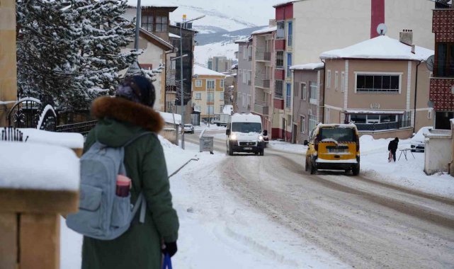 Bayburt'ta etkili olan kar yağışı sonrası kent beyaz örtüyle kaplandı