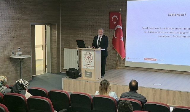 Bayburt İl Sağlık Müdürlüğü personeline yönelik gerçekleştirilen seminerde, Müftü Yardımcısı Nurettin Akgül, Kur'an ve sünnet ışığında yuva kurmanın önemini anlattı. Katılımcılar, evliliğin aile ve toplum üzerindeki etkileri ile neslin korunmasındaki rolü hakkında bilgilendirildi.