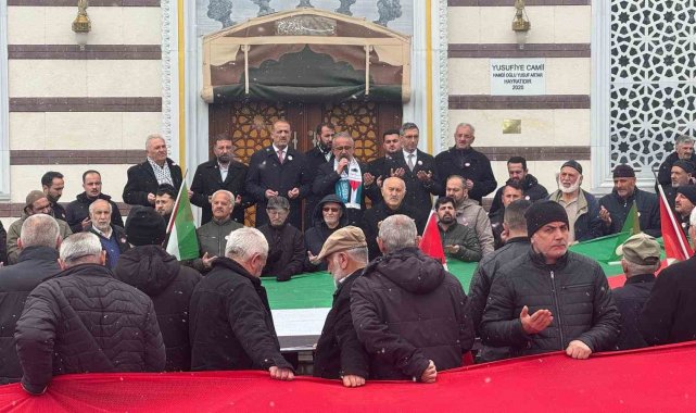Yusufiye Camii bahçesinde gerçekleştirilen açıklamada, İsrail'in uluslararası hukuku hiçe sayan uygulamalarına tepki gösterilerek, Filistin halkının yalnız olmadığı mesajı verildi.