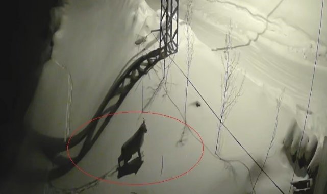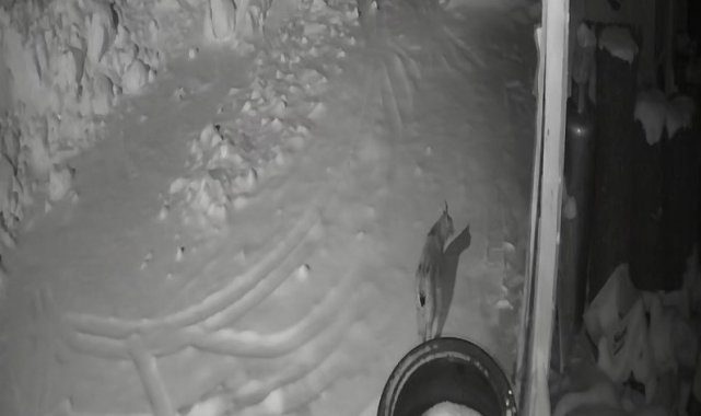 Üzengili köyünde yiyecek aradığı tahmin edilen vaşak, güvenlik kamerasına yansıdı. Görüntülerde, iri cüsseli vaşağın bir süre köy içinde dolaştığı, ardından yol kenarına gelerek çevreyi izlediği yer aldı.