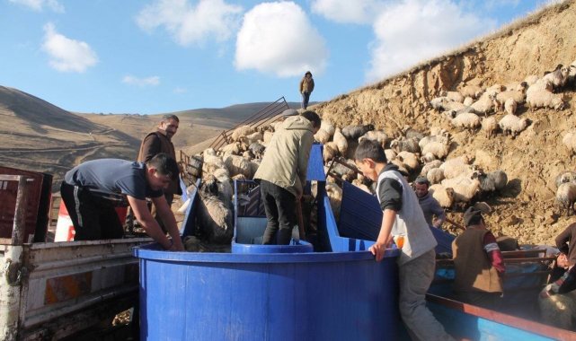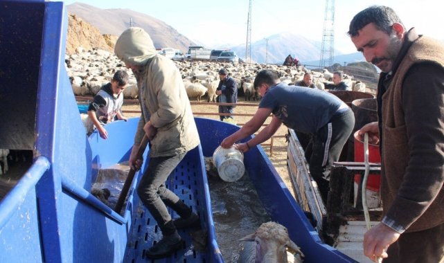 Bayburt'ta küçükbaş hayvanlar mobil koyun yıkama makineleriyle yıkanarak ilaçlanıyor