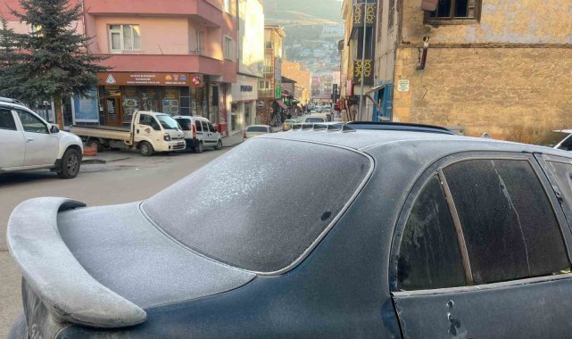 Bayburt'ta dondurucu soğuklar sabah saatlerinde yaşamı olumsuz etkilemeye devam ediyor. Gece hava sıcaklığının sıfırın altına düşmesiyle birlikte park halinde bulunan bazı araçların camları buz tuttu, kaportalar kırağıyla kaplandı.