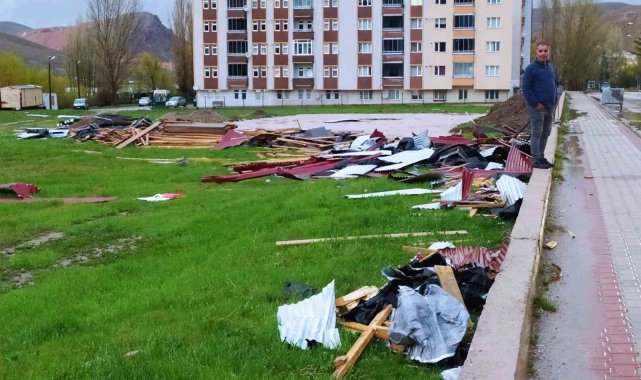 Bayburt'ta kuvvetli rüzgar evlerin çatılarını uçurdu