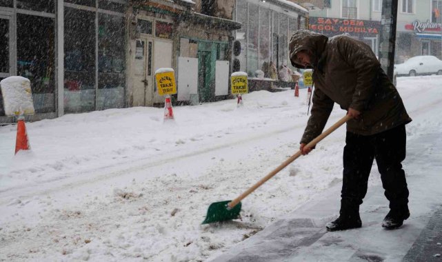 Gece saatlerinde başlayan ve ilerleyen saatlerde etkisini azaltan kar yağışı, sabah saatlerinde yeniden kuvvetlendi. Kent genelinde etkili olan yağış sonrası esnaf, dükkanlarının önünde biriken karları temizleyerek güne başladı.