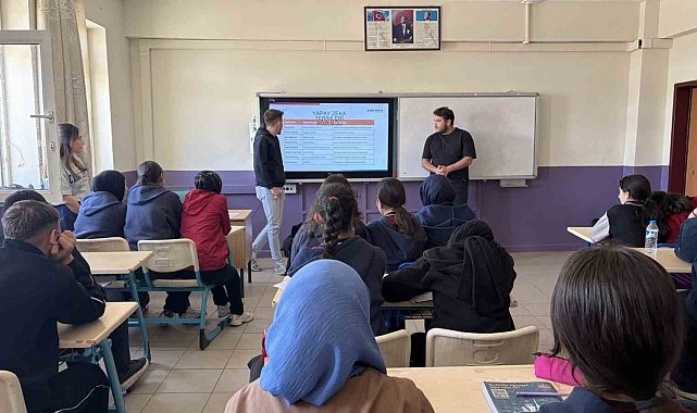 Eğitimde öğrencilere yapay zekâ, dijital yetkinlikler ve teknolojinin kullanım alanlarına ilişkin sunum yapılarak, yapay zekânın temel kavramları ile günlük hayattaki kullanım alanları anlatıldı.