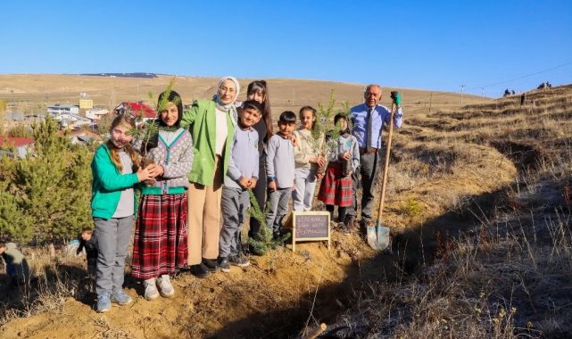 Bayburt'ta öğrenciler ve öğretmenler 300 fidanı toprakla buluşturdu