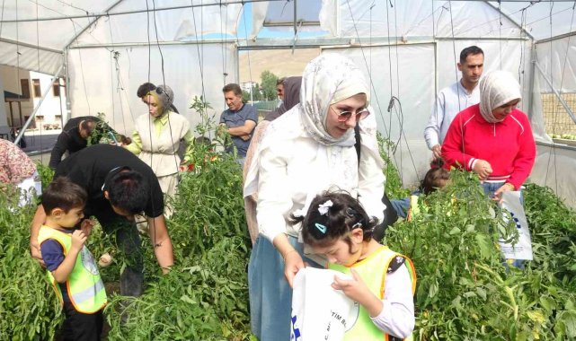 Bayburt'ta özel öğrenciler serada organik sebze hasadı yaptı